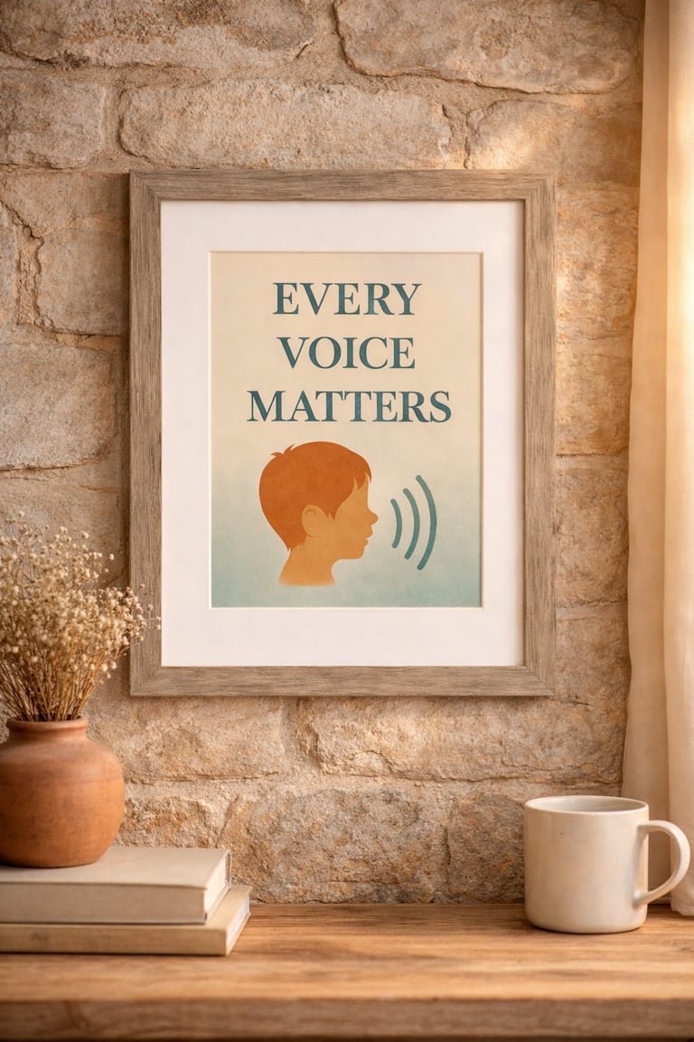 Empowering SLP-inspired art prints designed to celebrate communication, progress, and the power of every voice — available framed or unframed.