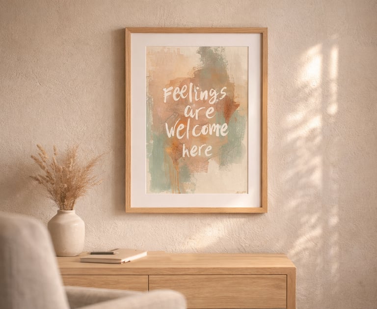 Thoughtfully designed art for counseling offices, healing spaces, and homes that value emotional safety. Each piece blends warmth, intention, and modern design to create environments where people feel seen.
