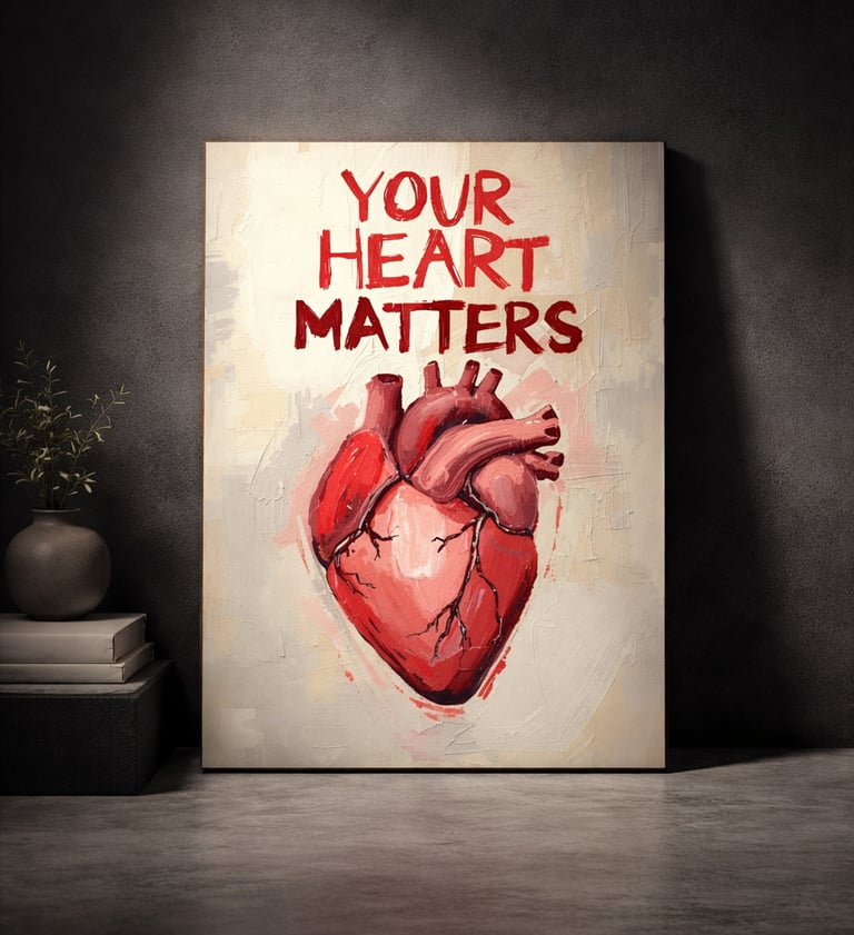 A modern fine art print honoring heart health, cardiology, and the life-sustaining power of the human heart.